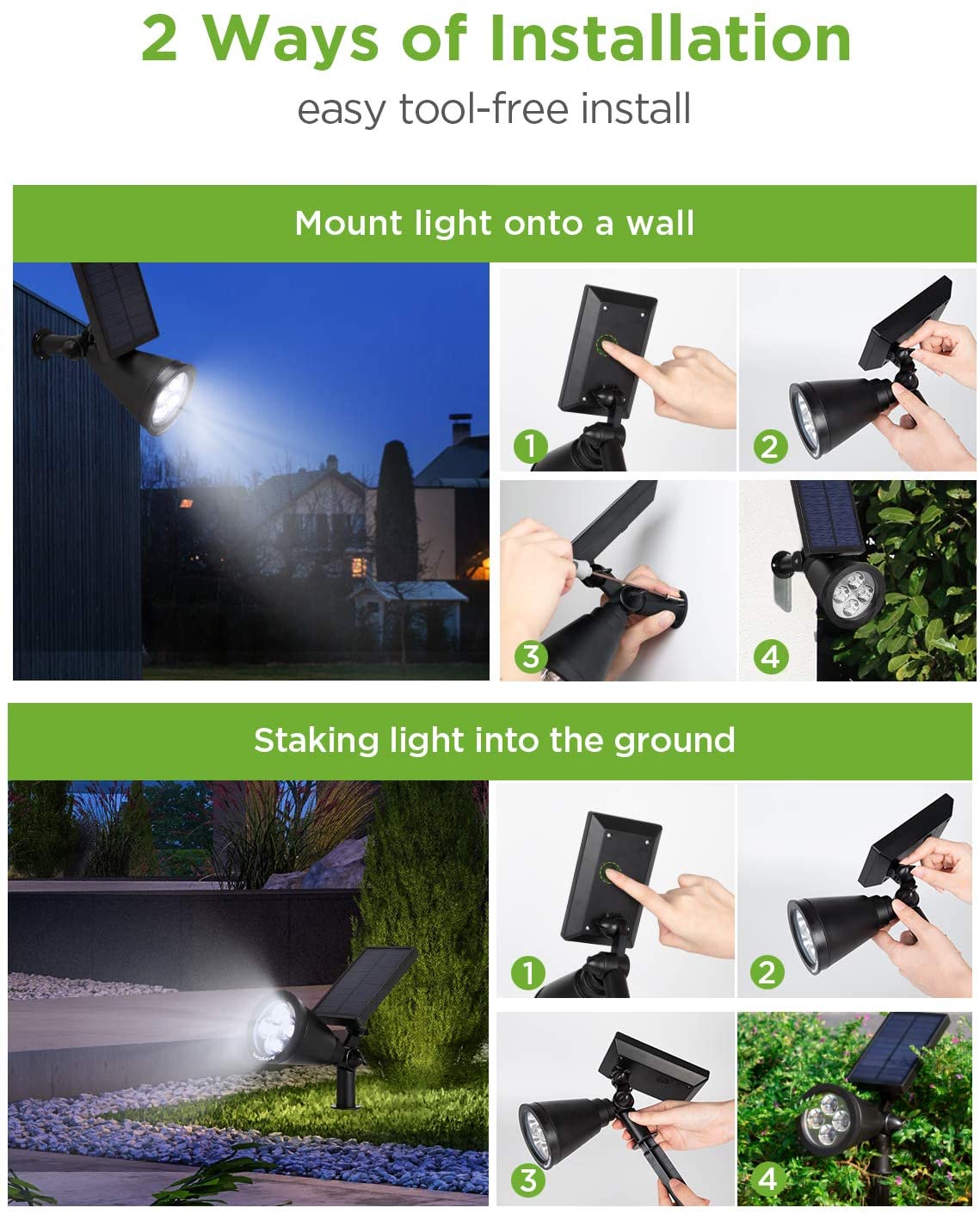 The solar lights will automatically turn on at night and turn off at dawn. No electricity bills and no manual on/off. This is the perfect outdoor lighting option to save energy and time.