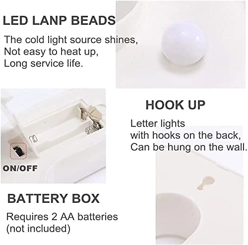 [energy saving and durable] -This LED Letter lights is portable and can be hung on the wall or on the table. Battery powered, it requires 2 AA batteries, so it does not need to be plugged into a power outlet. It’s too safe. (excluding battery)