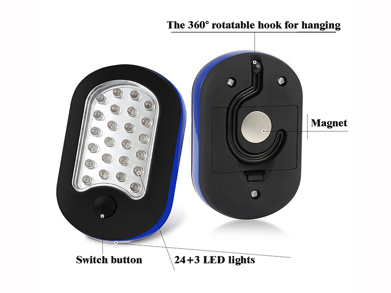 The compact work light features 2 different operating modes: 24-LED and 3-LED. There are 27 LED beads in total, which can make sure the light is enough to brighten the working area.