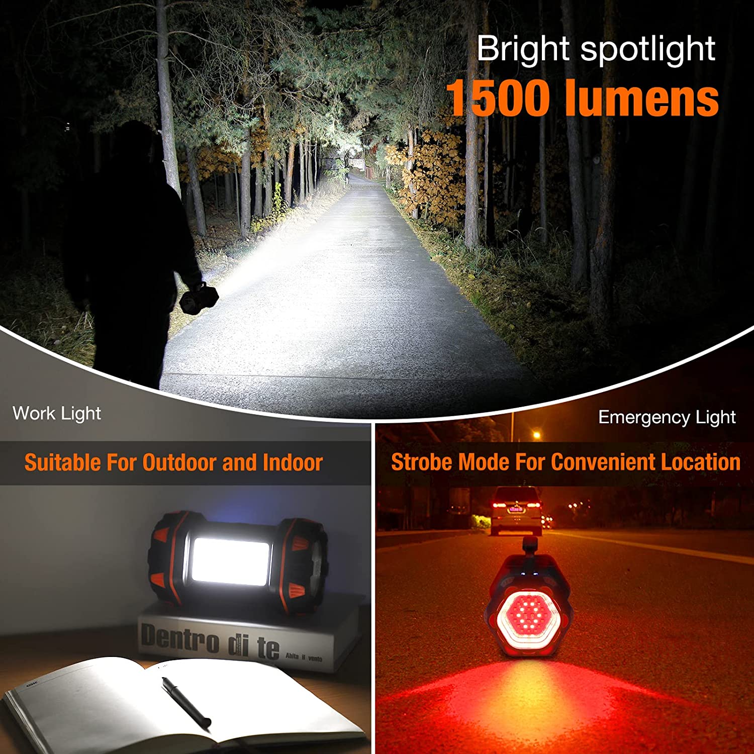 HIGH BRIGHTNESS-This setting up wholesale led work light battery-powered principal pillar surrenders out splendor to 1500 lumen with a long enlightenment distance of 500m (1640ft), Cast brilliant light for your exercises, climbing, fishing, hunting, setting up camp, open air crises.