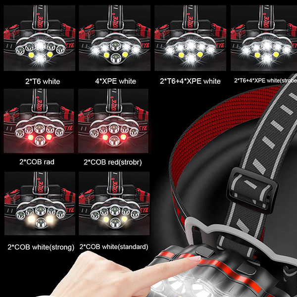 The battery-powered headlamp has 8 modes to browse to adjust to different situations, for example, solid bar, warm bar, red light, SOS red strobe,main bar, side pillar, all bar, SOS strobe.You can pick as indicated by your circumstance whenever.