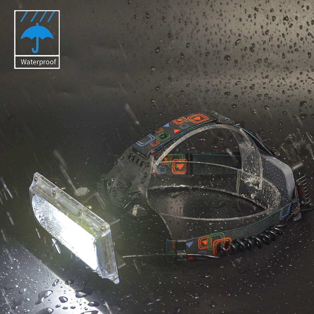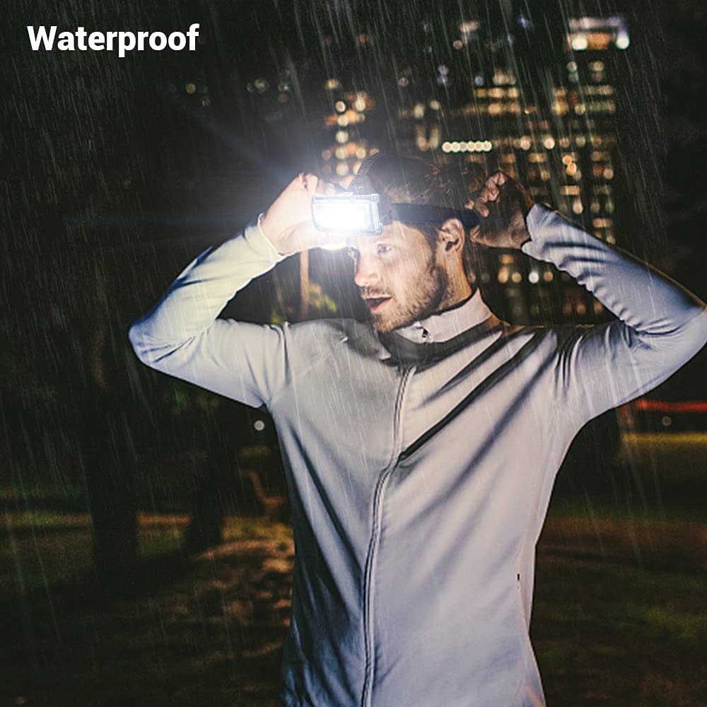 [outdoor waterproof headlights] let our COB Headlamp stay on even in rainy or snowy days. There are high-quality silicone cover and leak proof waterproof wiring, all of which create a powerful waterproof function.