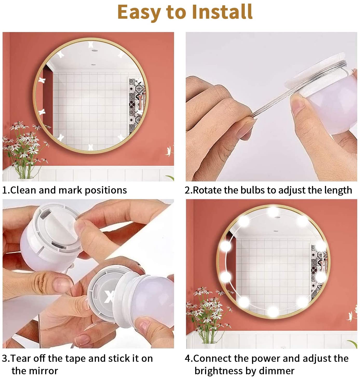 Quick Installation & DIY Joy. Buy it and decorate your makeup mirror with it. It can be quickly install, only need to get the stick off and stick it on the Mirror. You can get joy and beauty at the same time with this Makeup Mirror Lights