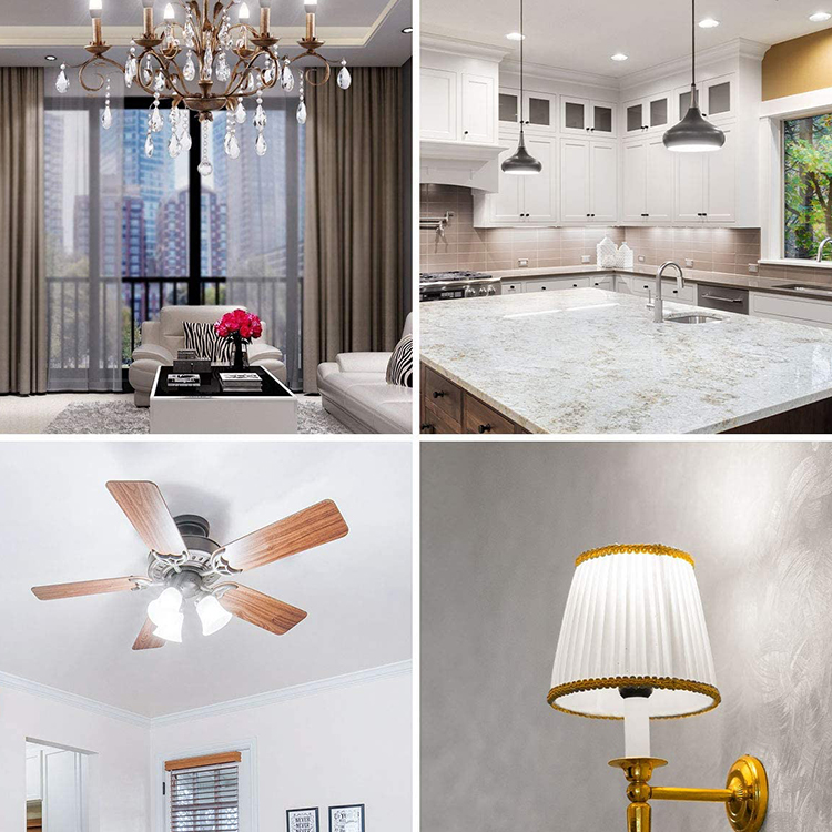 Widely used – B11 E12 bulb is fully applicable to small lighting equipment such as living room, dining room, kitchen, bedroom, corridor, etc., such as chandeliers, ceiling fans, wall lamps and chandeliers.
