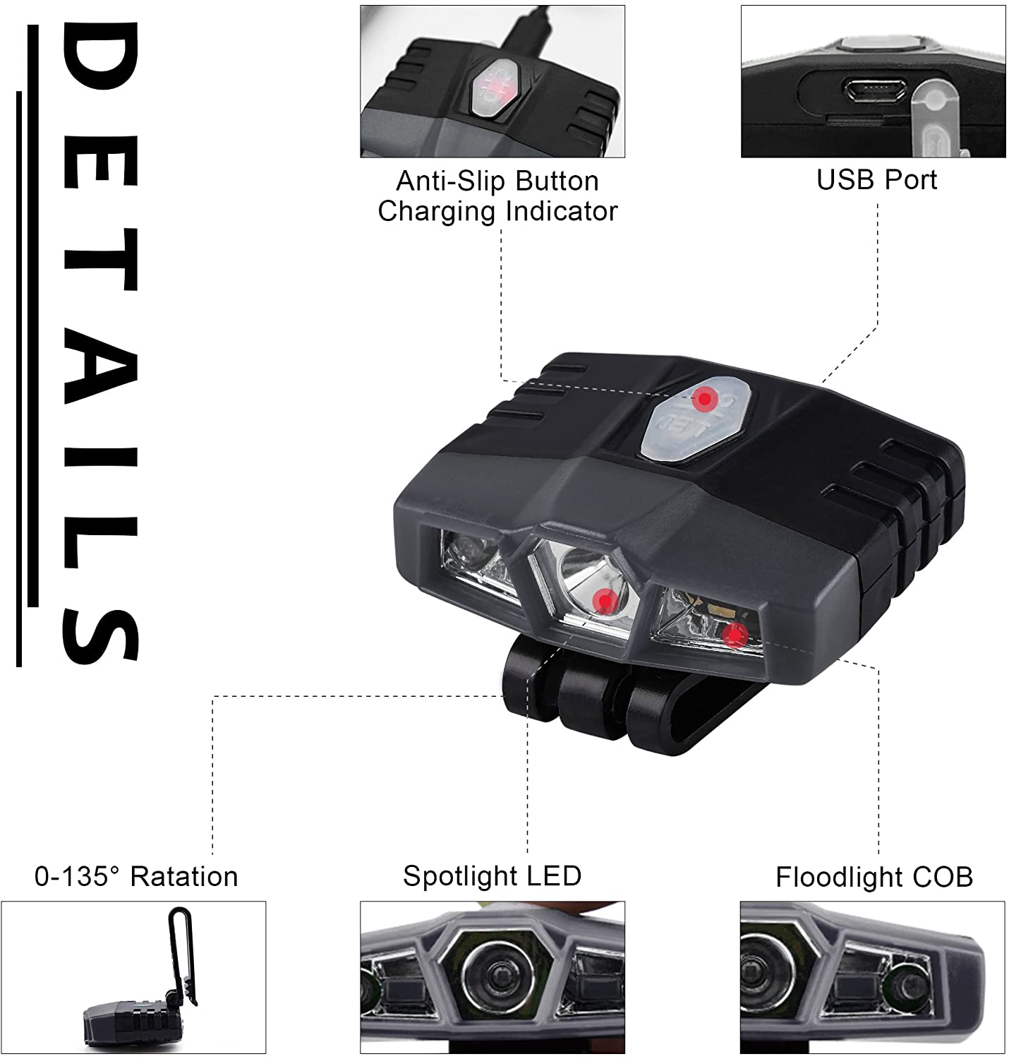 ✔ High quality manufacturing – Hat Light Flashlight with High-quality lithium battery made in the China are ideal for fishing, camping, hunting, running, cycling, reading and close-up tasks.