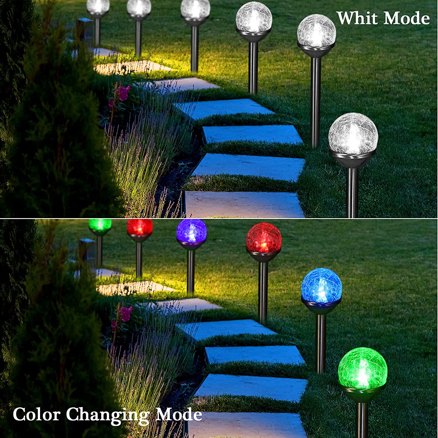 Material: Our crackle glass solar light are made of glass and stainless steel, the bracket made of amorphous silicon solar panel and ABS plastic material, which can produce light with glass and improve the conversion effect of light, and this lamp has a certain Excellent waterproof effect, safe and reliable, long service life