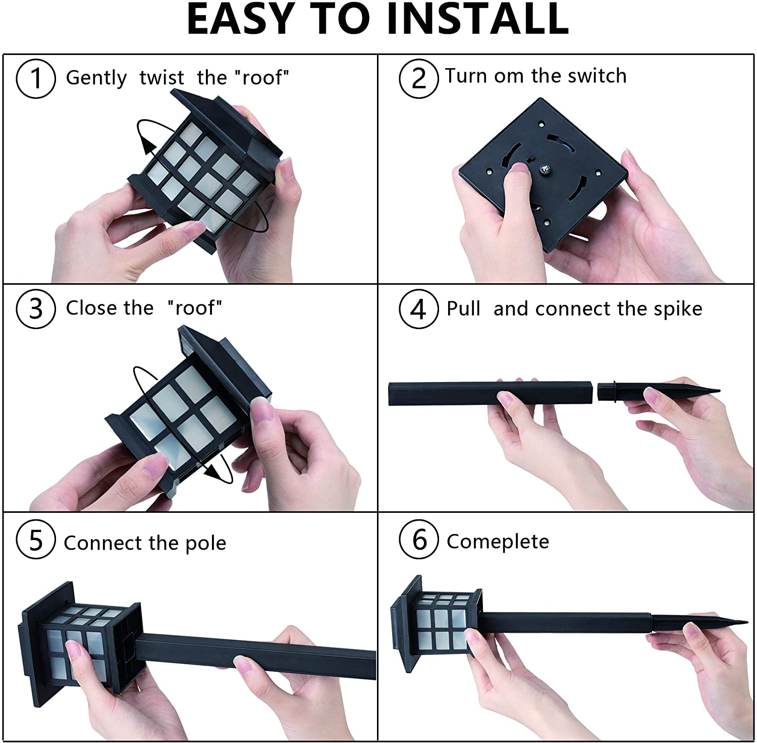 IP44 Waterproof: Our outdoor solar light uses ABS material, and the material of the light pole is also made of durable plastic IP44 waterproof rating makes it easy to install in rainy days: This retro floor plug light is easy and convenient to install, just need It can be done in a few simple steps.