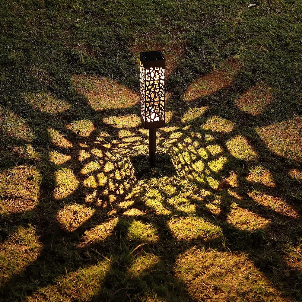 Simple installation: No additional wires are required, just insert the stake into the soil, which is simple and convenient, and the hollow design reflects the light, which is more beautiful.