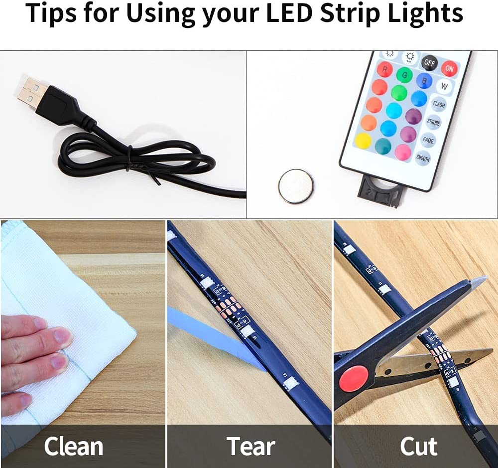 USB power supply: The strip lights can work at a voltage of 5V. It only needs to be charged by the USB of the TV, and this RGB strip lights can be turned off or turned on with many TVs. Of course, you can also use a mobile power supply to turn it on. Easy to carry outdoors.