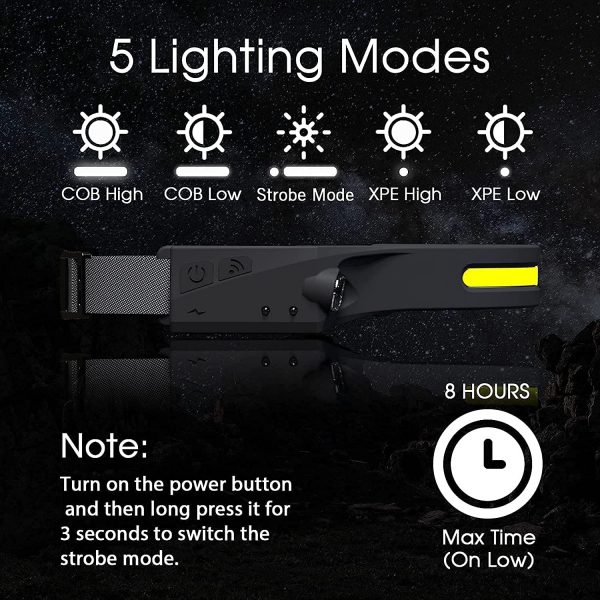 Super brightness: Compared to a normal headlamp, this lightweight headlamp can illuminate more areas, making it safer and clearer to see in the dark.