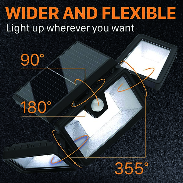 The widest irradiation angle of this 3-sided solar light can reach 355°. The angle can be adjusted freely, which can easily meet your illumination needs and facilitate you to view your entire yard.